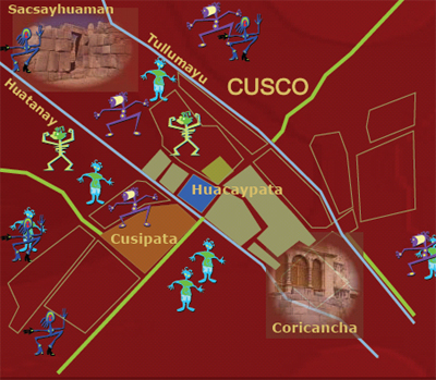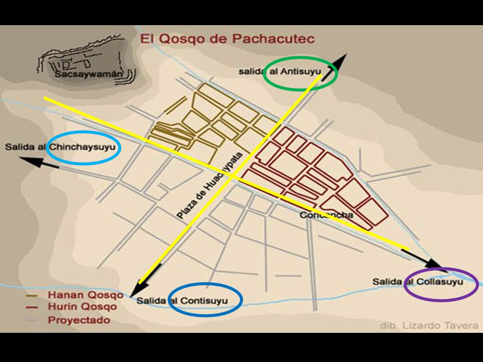 El cusco estaba dividido como los aztecas en dos mitades el cusco alto o Hanan y Hurin Cusco en el imperio, ya que son separados por uno de los caminos del Antisuyo, la gente que formaban viralización en el poder económico, social y político, todas las historias que hablan sobre el imperio se sucedieron dos dinastías como son los Hanan cusco y Hurin cusco en el imperio de los Incas.